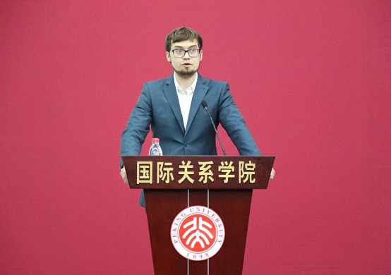 代表老生发言的为2014级博士生留学生李太龙。他总结了他在北大国关收获的四颗心:虚心、耐心、良心、爱心,并围绕“四心”展开了演讲,引经据典,与同学们分享了作为一名留学生与作为一名北大学生的所思所得。他认为,作为一名国关人,应谦虚而富有毅力,有着对周围人、对天下强烈的责任感,为世界做出自己的贡献。演讲最后,他表达了对学弟学妹的美好祝愿。