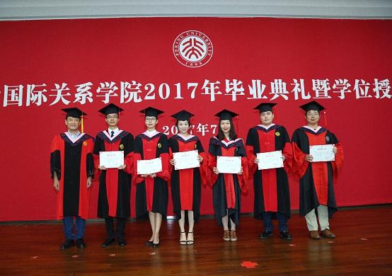 2017年7月3日上午,北京大学国际关系学院2017年毕业典礼暨学位授予仪式在秋林报告厅隆重举行。国际关系学院院长贾庆国,党委书记李寒梅,副院长王逸舟、唐士其、吴强,党委副书记兼副院长范士明,院友代表、清华大学国际关系研究院教授庞珣,各系所负责人、专业主任、班主任,学工办、院友办、国际项目办的老师、部分毕业生家长、2017届全体毕业生共400余人出席了毕业典礼。典礼由国际关系学院党委副书记祝诣博主持。