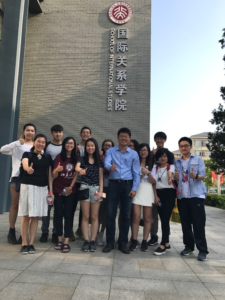 始业式上,范士明副教授欢迎来自台大的老师同学们。李义虎教授回顾了往届校园精英活动的开展情况,希望台大的同学在这项活动中能更好的了解北大、认识大陆,并勉励台大、北大同学们能够互相学习,增进了解。张植荣教授和节大磊副教授询问了台大同学此行的计划,并鼓励台大和北大的同学相互介绍并积极交流。结业式上,张植荣教授和节大磊副教授聆听了学生们对此次交流活动的感受,并仔细询问了学生们这两周以来的不同感受。大家畅所欲言,纷纷表示在此次活动中受益匪浅,台湾学生更是表示通过此次实地考察帮助他们能够更好地认识了北大、北京以及大陆的历史与文化。为了使参访团学员更加充分地了解北大,我院提前为他们招募了8位学伴。参访期间,学伴们尽职尽责,带他们听课、游览校园、在学伴微信群里随时为大家分享讲座信息和热门课程信息,为他们此次北京之行安排了丰富的业余活动。学员们特别提到我院本科16级杨冰夷、林子萱,15级李子沛等同学,感谢他们热情、耐心、细致地招待。