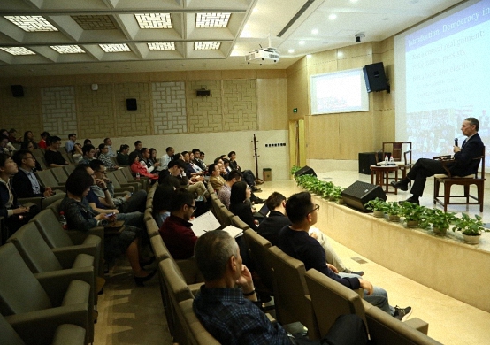 短短两个小时的时间内,卡赞斯坦教授从多角度分析了美国的政治传统,并就特朗普当选后的美国与世界做出了展望。他的观点,得到了现场不少学者、学生和观众的响应。演讲结束后,卡赞斯坦教授还就现场观众提出的关于美国政治传统的形成、特朗普上台后的外交政策趋势、特朗普上台对于中国是机遇或是挑战、美欧关系的未来走向等问题进行了解答,并进一步与与会人士进行了交流。
