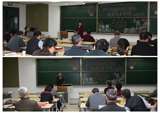 2017年1月16日,北京大学国际关系学院科研工作大会暨年终总结会在国关楼C座举行。院长贾庆国、党委书记李寒梅等学院领导和包括部分离退休教师在内的100余位教职员工参加大会。会议主题是分析国关学院现有各学科专业现状,对照国内外同领域发展前沿,明确自身优势与不足,谋划学科长远发展,同时对2016年全年工作进行总结。会议由副院长王逸舟主持。