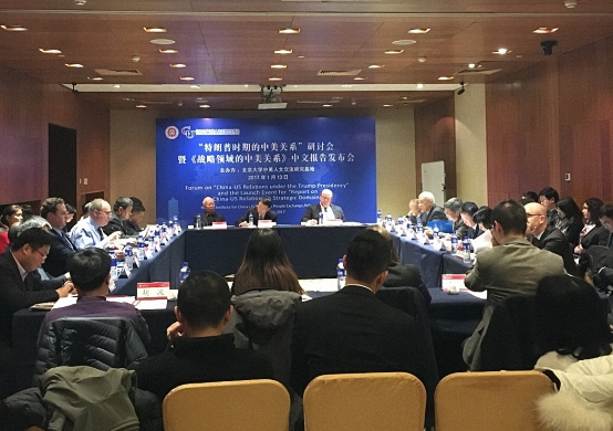 2017年1月13日下午,“特朗普时期的中美关系”研讨会暨《战略领域的中美关系》中文报告发布会在北京大学举行。近30位中美知名专家学者参会。