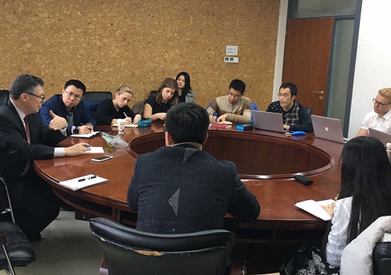 接下来,大卫 F·戈登先生就特朗普时代朝鲜核问题、中国的全球领导力问题、对欧洲和俄国的影响等问题,和同学们展开深入讨论。圆桌会议进行两个小时,深入而富有成效,提供了观察特朗普今后政策取向的多方位的观察视角。