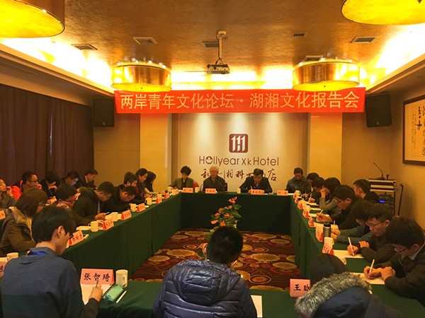 本次两岸青年文化论坛的举办,受到湖南省委宣传部、省委统战部和省台联的高度重视。首场活动由湖南省委宣传部前副部长、省社科联主席、湖南师范大学教授郑佳明为赴湘参访的两岸青年学者做湖湘文化专场报告会。郑佳明教授引经据典、深入浅出,为两岸青年们系统讲述了中国近代以来的历史浪潮中,三湘大地上涌现出的伟人和英雄群体。郑教授还以屈原、周敦颐、王夫之、曾国藩和毛泽东等湖南历史名人为例,梳理总结了湖湘文化发展的历史脉络和独具一格的文化特征。郑教授指出,湖南地处长江与中原地区的交汇点,地形山水相连,古时与少数民族聚居地区相邻,且文人墨客多寓居于此。特殊的地理和历史条件为湖南带来了特有的战争文化、移民文化、民族融合文化、流寓文化和宗教文化。地域文化造就了湖南人的文化性格,湖南人形成了一种拼搏霸蛮和坚韧的气质,在近代救亡图存的历史浪潮中更为世人展现出了心忧天下、敢为人先的精神品格。