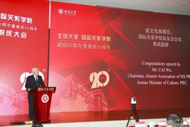 全国政协外事委员会副主任、前文化部部长、国际关系学院院友会会长蔡武代表院友致辞
