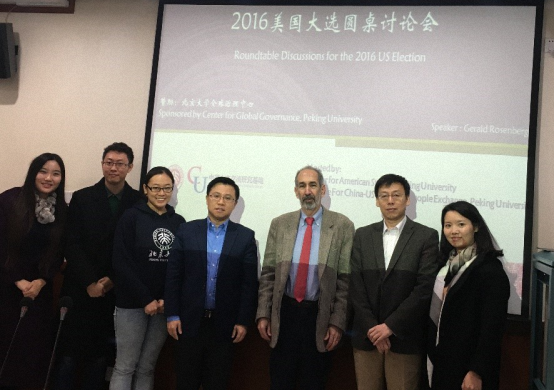 2016年11月5日上午,在美国大选进入倒计时第四天之际,美国芝加哥大学法学院政治学系副教授Gerald N. Rosenberg在北京大学国际关系学院与部分师生举行2016年美国大选圆桌讨论会。