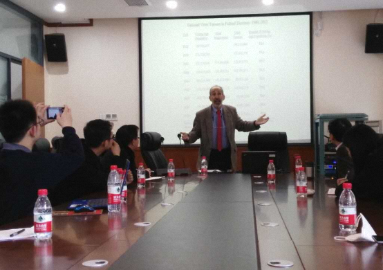 接下来,Rosenberg副教授和与会师生就美国大选民调的可信度、摇摆州的争夺、美国共和党的极化、如果希拉里当选,怎么弥合社会分歧;如果特朗普当选,对中美关系会有什么影响等问题展开深入讨论。圆桌会议持续两个小时,整个讨论深入而富有成效,对理解美国此次大选有很大助益。