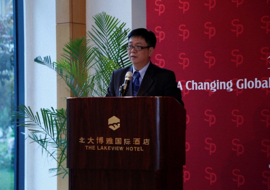 上午10:30,会议地点转至北京大学斯坦福中心,进行闭门的主题讨论。讨论由北京大学国际关系学院院长贾庆国、北京大学斯坦福中心主任戴慕珍主持,吴建民大使、内格罗蓬特大使就当今中美两国的热点问题,如南海问题、中美经济合作、美国大选等,进行了更为深入的探讨。