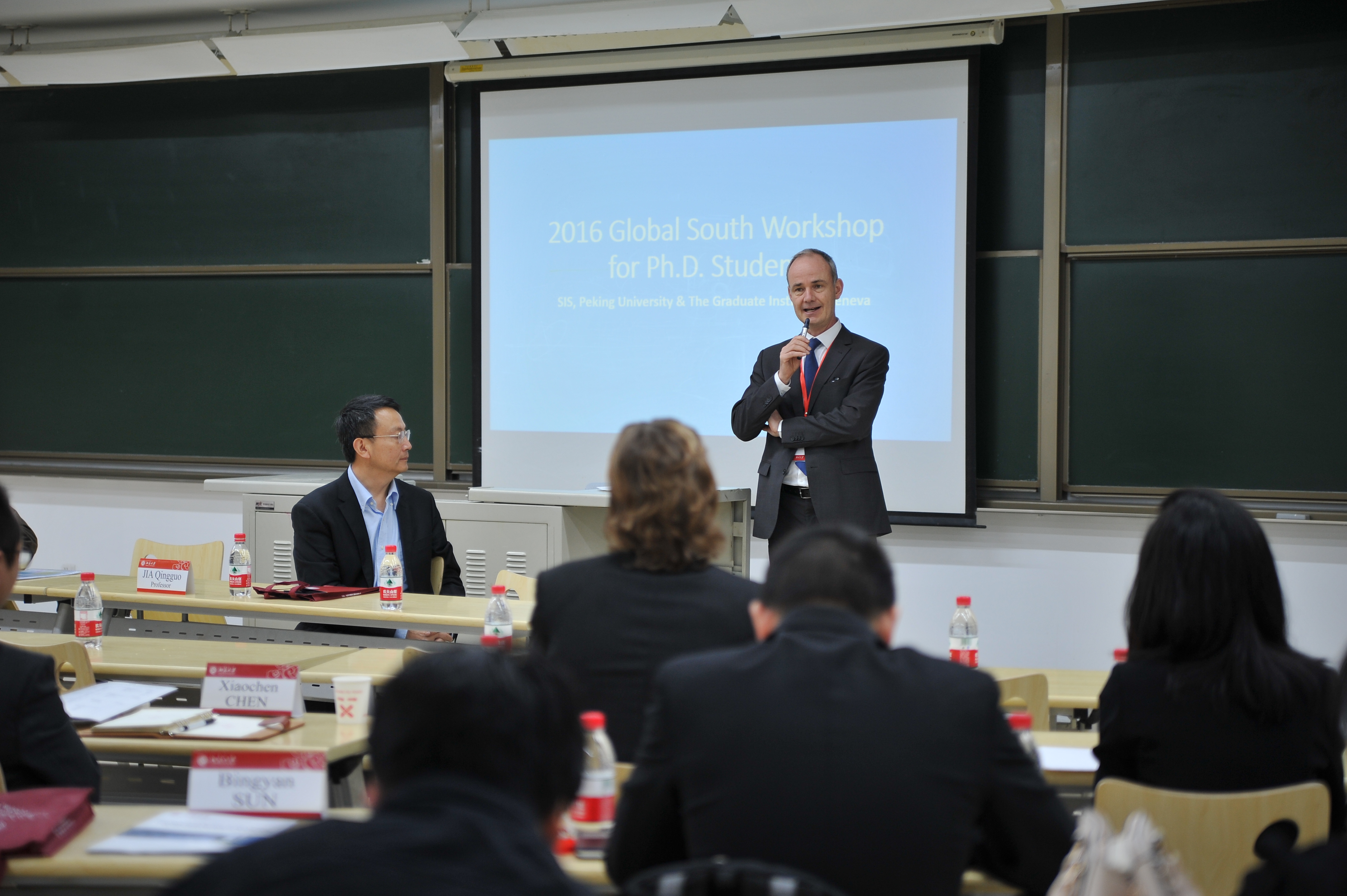 5月1日-6日,北京大学国际关系学院和日内瓦高级国际关系与发展研究院共同举办的2016全球南方问题博士生论坛在北京大学国际关系学院顺利召开。博士生论坛共有七个学生讨论组。来自中国、美国、法国、印度、巴西、尼日利亚等十多个国家的近四十位博士生围绕中国外交转型、全球治理、南南合作与发展问题、国际投资、环境保护等备受关注的议题进行了热烈讨论。另外,北京大学、清华大学、中国人民大学等在京高校和科研机构的学者和外交工作者也应邀同日内瓦国际高级研究院的学者也就全球环境问题、发展问题以及中国的教育国际化问题举行了高端论坛。