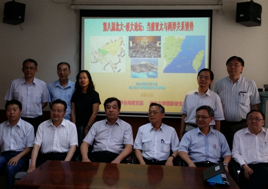 2015年7月6日,北京大学台湾研究院与淡江大学国际研究学院在北大共同举办“当前亚太与两岸关系情势”学术研讨会。这次会议是双方多年来利用暑期连续举行研讨会的继续,每年双方都共同协商选定一些两岸间关注的重点议题作为研讨会的内容。两院学者就当前共同关心的问题进行了充分讨论,并提交了相关论文。本次研讨会分上午和下午两个时段,具体议题包括:当前亚太政经形势、欧盟一体化与亚太区域整合的比较、台湾领导人选举和“立委”选举、蔡英文与洪秀柱选情及“一带一路”与台湾、亚投行与区域整合等。