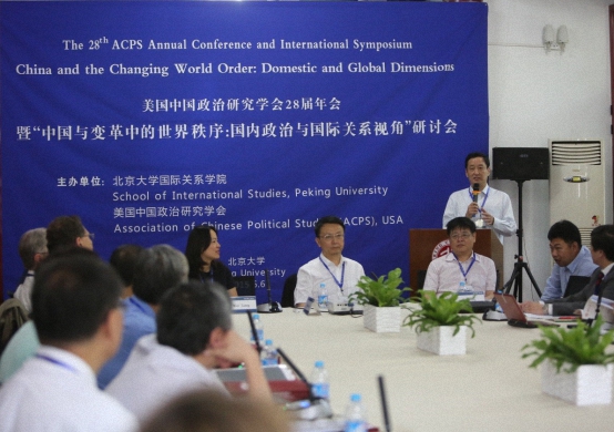 2015年6月6-7日,由北京大学国际关系学院与美国中国政治研究学会(ACPS)联合主办的美国中国政治研究学会第28届年会暨“中国与变革中的世界秩序:国内政治与国际关系视角”研讨会在北京大学召开。北京大学国际关系学院院长贾庆国教授,美国中国政治研究学会会长、美国蒙特雷国际研究院梁微教授出席大会开幕式并致辞。北京大学国际战略研究院院长王缉思教授、中国人民解放军军事科学院陈舟将军应大会邀请发表主旨演讲。大会开幕式由北京大学国际关系学院副院长王逸舟教授主持。来自美国、中国、加拿大、英国、德国、俄罗斯、韩国、墨西哥、日本及台湾、香港和澳门等17个国家或地区的70多位中国问题专家参加了此次会议。在为期两天的会议中,与会专家和学者就中国的改革、变革中的世界秩序与中国外交调整等议题展开了深入讨论。