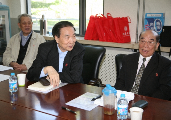 会议由60级同学会秘书长王杰主持,首先由60级同学会主席沈仁道致辞,他深情地回忆了在北大国政系学习五年的情景,他说:60级50多位同学,毕业50年来,能够在社会上做出贡献,得益于北大的传统,得益于北大的学风,得益于恩师们的培养;他列举了王国文校友怀着远大抱负,长期工作于陕甘一些贫困地区,历任陕西定边县委书记、陕西省纪委副书记、甘肃武威地委书记、甘肃省人大常委、甘肃省人大财经委副主任等职务,并是第九届全国人大代表,为大西北的建设做出了巨大贡献;刘继南校友经过自己的努力,在北京广播学院从一个辅导员成长为中国传媒大学校长兼党委书记,可以说她是中国传媒大学的有功之臣;还有黄宗良在学术上造诣很深,出版了大批著作,还在中南海为中央政治局领导授课;其他同学在各自岗位都尽力尽责、勤勤恳恳为党、为人民奉献了自己毕生精力。60级同学没有辜负北大的期望,没有辜负恩师们的教诲。院党委书记李寒梅代表学院向老校友问候并祝贺文集的出版,她说:60级是国际关系学院第一批正式招生的毕业班,为后来的年级做出了榜样,60级出人才,是我们学院的财富,是我们学院的骄傲,学院将把60级好的传统、精神传承下去,希望老校友常回来看看,看一看学院的发展。班主任张映清深情地回忆了与60级同学生活、劳动在一起的情景;责任编辑赵丽华是北大中文毕业的校友,她热情赞颂60级同学在编辑文集中的责任感和忘我精神,她说《五十年前北大一个班》是一本好书,它将是读者的最好精神食粮。文集编委会代表江长仁,介绍了这本文集为何出版如此快和这本书出版的价值。整个会议在温馨、欢声笑语中结束。