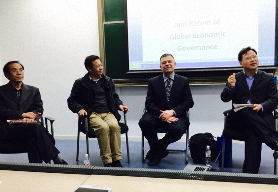 2015年4月15日晚,北京大学国际政治经济研究中心举行“亚投行与全球经济治理改革”专题圆桌讨论会。应邀演讲嘉宾包括加拿大UBC政治学系副教授、亚洲研究院院长、中国委员会主任肖逸夫(Yves Tiberghien)博士;中国人民大学国际关系学院教授、全球治理中心主任庞中英博士;北京大学国际关系学院教授、国际政治经济研究中心主任王勇博士,以及北京大学国际关系学院副教授陈绍锋博士。 北京大学国关学院院内外师生、外国驻华机构代表90余人出席讨论会。研讨会由北京大学国际政治经济研究中心主任王勇教授主持。会议全程使用英文作为工作语言。