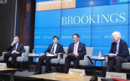 2014年12月15-16日,贾庆国院长率领我院代表团参加了在美国智库布鲁金斯学会举办的中美韩三边二轨对话的第二轮会议。我院王正毅教授,查道炯教授,张清敏教授,南京大学中国南海协同创新中心执行主任朱锋教授和同济大学国际关系学院副院长仇华飞教授参加了这次对话。