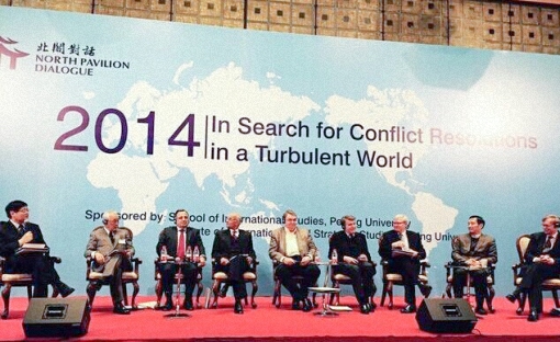 2014年12月2日至3日,由北京大学国际战略研究院主办、中国人民外交学会提供合作的首届“北阁对话”年会在北京大学举行。参加对话的人士包括澳大利亚前总理陆克文、美国前常务副国务卿佐利克、印度前国家安全顾问梅农等11位外国前政要、战略家,以及国内相关领域一些智库的负责人和专家学者。前国务委员、北京大学国际战略研究院名誉院长戴秉国参加了这次对话。