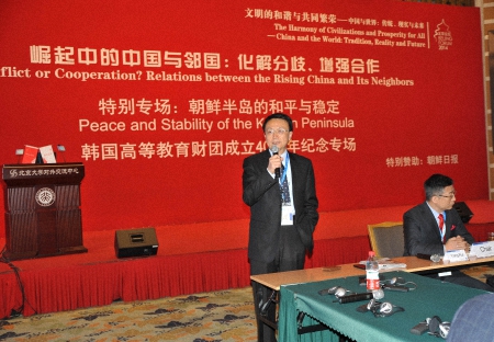 2014北京论坛以“文明的和谐与共同繁荣——中国与世界:传统、现实与未来”为主题,关注中国与世界共同发展的历史与机遇,三百余名来自世界各国的学者专家与各界领袖齐聚论坛,探讨文明的和谐与共同繁荣的中国经验。国关学院承办以“崛起中的中国与邻国:化解分歧、增强合作”为题的北京论坛第一分论坛,由贾庆国院长负责学术设计并担任分论坛主席。