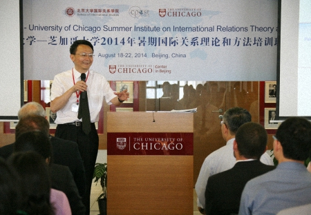 2014年8月18日至22日,由北京大学国际关系学院与芝加哥大学联合举办的2014年暑期国际关系理论和方法培训班在芝加哥大学北京中心举行。在为期五天的紧张课程中,芝大与北大在国际关系领域的知名学者和学术新秀为来自全国各地高校、科研机构的100余位国际关系学生和青年教师奉献了学术的饕餮盛宴,同时也加强了两校的相互了解和学术交流。