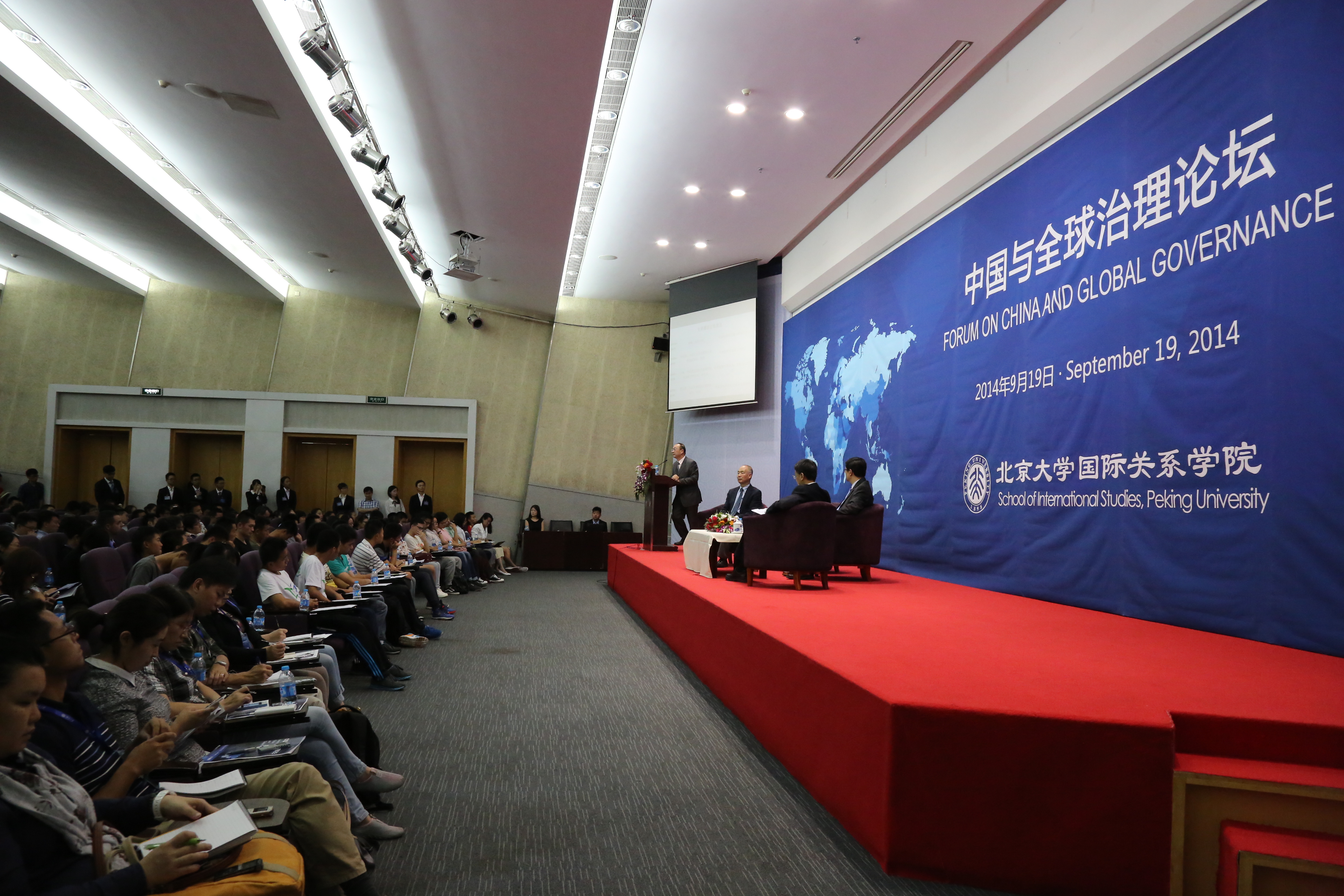 2014年9月19日,“中国与全球治理”高端系列论坛在北京大学国际关系学院秋林报告厅举行。