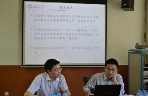 王逸舟教授首先对青年学者们的“回家”表示欢迎,并对近年来国际政治领域青年学者们的研究成果表达了充分的肯定和赞赏。主题报告阶段,陈拯老师以主流建构主义与中国国际关系研究中的“国家社会化”研究议程开始,做了“反思社会化:规范重构与社会退化”的演讲,并谈到了社会化研究议程兴起的背景、演进逻辑、问题和不足以及超越它的一些思路和尝试。