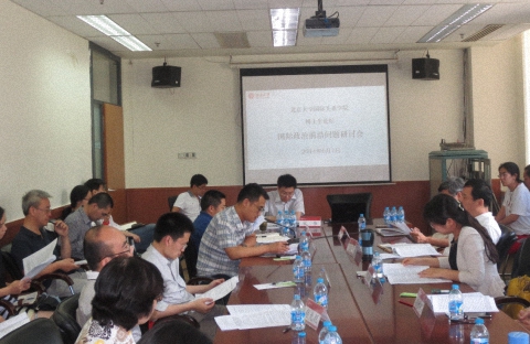 由北京大学国际关系学院主办、我院博士生论坛和《国际政治研究》杂志联合承办的“国际关系学院博士生论坛国际政治前沿问题研讨会”于2014年6月7日下午在我院C105会议室举行。会议邀请到了曾经在博士生论坛做过主题发言、已经毕业并在高校和研究机构任职的五位青年学者。这五位老师包括:陈拯老师(上海交通大学国际与公共事务学院)、朱中博老师(中国国际问题研究所国际战略研究部)、赵光锐老师(南京大学政府管理学院)、朱晓琦老师(中国人民大学国际关系学院)、孙力舟老师(重庆大学人文社会科学高等研究院)。王逸舟副院长为会议致欢迎辞,张小明教授为会议作了点评和总结,宋伟老师主持了会议,庄俊举老师、潘荣英老师及30多位硕博学生参与了学习和讨论。