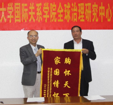 贾庆国教授首先诚挚地感谢刘大圣先生的慷慨捐助,表示会按照协议规定节约使用资金。贾庆国教授表示,全球治理在国内是近几年才逐渐兴起的一个新领域。随着中国的发展以及全球一体化的不断深化,中国应准备好如何与一个联系不断紧密、互动更加频繁的世界打交道,并在此过程中维护好自身的合法权益。面对全球性问题和挑战,中国的积极参与将为妥善应对全球性挑战发挥至关重要的作用。为此,成立全球治理研究中心,加强全球治理领域的问题研究有着重大意义。中心未来一段时间的研究重点将集中在发展与援助及其模式、全球保护的责任问题和中国的海洋权益。