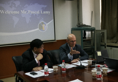 2014年2月20日,世界贸易组织(WTO)前总干事帕斯卡•拉米(Pascal Lamy)先生访问北京大学国际关系学院,与学院部分师生座谈。国际关系学院教授、北京大学国际战略研究院院长王缉思主持了座谈会,王勇教授、张海滨教授、余万里副教授、陈绍锋副教授、王栋副教授等参加了座谈会。