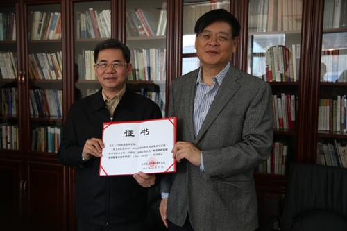 郑泽光部长助理宣布,外交部确定北京大学国际战略研究院为2013-2015年 “外交部政策研究课题重点合作单位”,并向研究院颁发了“外交部政策研究课题重点合作单位”证书。