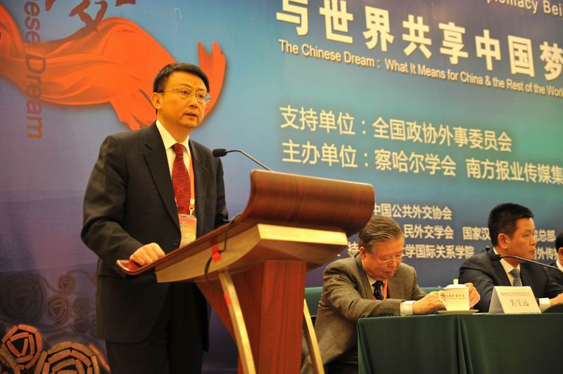 2013年11月30日,由全国政协外事委员会组织召开的“与世界共享中国梦”察哈尔公共外交年会在全国政协礼堂举行。我院贾庆国教授应邀出席会议并做以“让世界认同和共享中国梦重在调整心态”为主题的主旨发言。