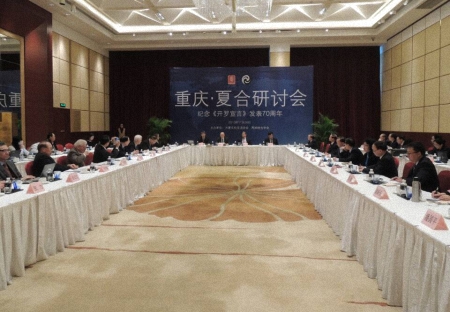 (综合中新社、人民网、中评社报道)2013年11月26日,北京大学台湾研究院院长、方夏文化交流协会副会长李义虎教授出席由大陆方夏文化交流协会和台湾两岸统合学会在重庆共同举办的第二届“夏合研讨会”,在开幕式致辞并主持了闭幕式。两岸退休涉外人员和专家学者近30人出席研讨会,其中大陆方面有:方夏文化交流协会会长、前外交部副部长、驻美大使周文重,方夏文化交流协会荣誉会长、前外交部副部长、驻日大使徐敦信,方夏文化交流协会副会长兼秘书长、前驻荷兰、匈牙利大使朱祖寿,方夏文化交流协会副会长、北京大学台湾研究院院长李义虎等;台湾方面有:前“外交部长”、驻美及欧盟代表程建人,两岸统合学会理事长张亚中,前“外交部长”欧鸿炼,前“农委会主委”林享能等。
