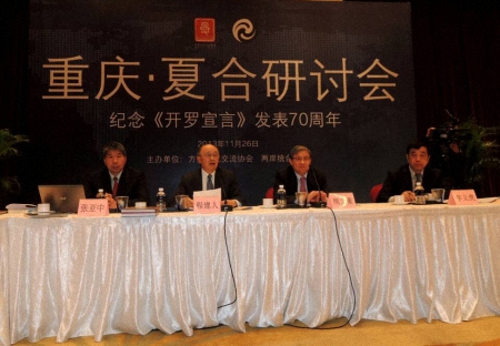 李义虎副会长致辞时指出:《开罗宣言》与《波茨坦公告》和《日本投降书》等一起都是二战结束后对亚太地区领土秩序进行安排的基础性文件,这些文件已构成稳固而又有效的法律链条。《开罗宣言》等对日本领土范围作了明确规定,日本想冲破这些规定是对国际秩序现状的公然挑战。正是《开罗宣言》等国际法文件,奠定了东亚地区的基本秩序,也曾使日本在战后走上了和平发展的正道。值得我们两岸共同注意和强调的是,中国是世界反法西斯战争的重要力量,在这场战争中发挥了极为重要的作用,做出了巨大的贡献。在纪念《开罗宣言》发表70周年的特殊时空下,我们更应该树立中华民族整体利益和两岸命运共同体的观念,在钓鱼岛、南海问题上两岸完全可以携手并肩、共同发声、加强合作,甚至在一些具体问题上采取联合行动。