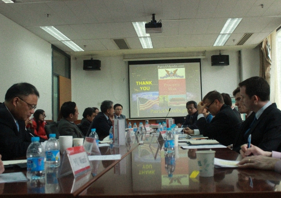 新美国安全中心的资深研究员Ely Ratner博士主要分析了中国的地区和国际安全环境形势,认为这种周边和国际环境的变化将促使中国在国际社会中承担更多义务。Ratner博士表示由于主动的战略收缩,美国将减少其在国际社会中承担的义务,由此中国将不得不为了维护自身的海外利益而承担更多责任。潜在的国际恐怖主义,日益重要的能源安全威胁,国际原材料的流通,不断扩大的海外商业利益以及地区性大国竞争都会促使中国外交放弃“韬光养晦”,转而更多地关注国际事务。