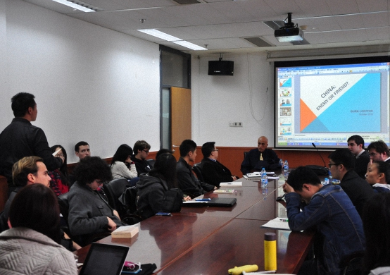 最后,在场来自中国、俄罗斯、美国的同学就罗福科少将的亲身经历、中美关系、美国反恐政策等问题提问,罗福科少将均一一作了细致而精彩的解答。讲座在轻松愉快的氛围中结束。此次讲座由北大美国研究中心秘书长范士明主持,北大美国研究中心副秘书长王栋也参加了此次活动。