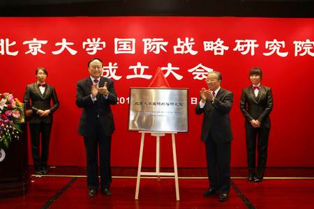 2013年10月23日,“北京大学国际战略研究院成立大会”在北京大学中关新园举行。原国务委员戴秉国,文化部部长蔡武,全国人大外事委员会委员、中共中央外事工作领导小组办公室原副主任陈小工,中联部副部长艾平,教育部副部长郝平,国务院发展研究中心欧亚所所长、原中国驻俄罗斯大使李凤林,外文出版发行事业局局长周明伟,外交部部长助理郑泽光,以及来自有关研究机构的领导同志、专家学者出席大会。北京大学党委书记朱善璐、校长王恩哥、副校长李岩松、陈十一和师生代表参加了大会。会议由北大国际关系学院院长、国际战略研究院院长王缉思主持。