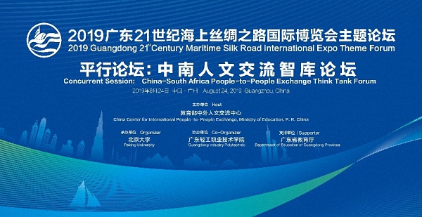 2019年8月24日,中南人文交流智库论坛在广东省广州市成功举办,此次论坛也是2019年广东21世纪海上丝绸之路国际博览会主题论坛中的平行分论坛之一。本次论坛由教育部中外人文交流中心和广东21世纪海上丝绸之路国际博览会主办,北京大学承办。