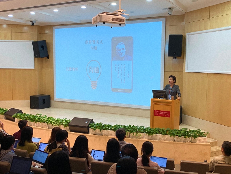 2019年9月17日晚,北京大学国际关系学院《国际组织与全球治理前沿名家系列讲座》课程第一讲在北大燕京学堂B101报告厅举行。前文化部副部长、全国妇联副主席,现中国妇女发展基金会理事长孟晓驷女士在题为“文以载道,言以化人——外事口才的应用及实践分享”的讲座中与同学们分享了她在外事口才应用及实践中的丰富经验与深刻感悟。学院副院长、国际组织与国际公共政策系主任张海滨教授致欢迎辞。课程负责教师陈沐阳助理教授主持讲座。
