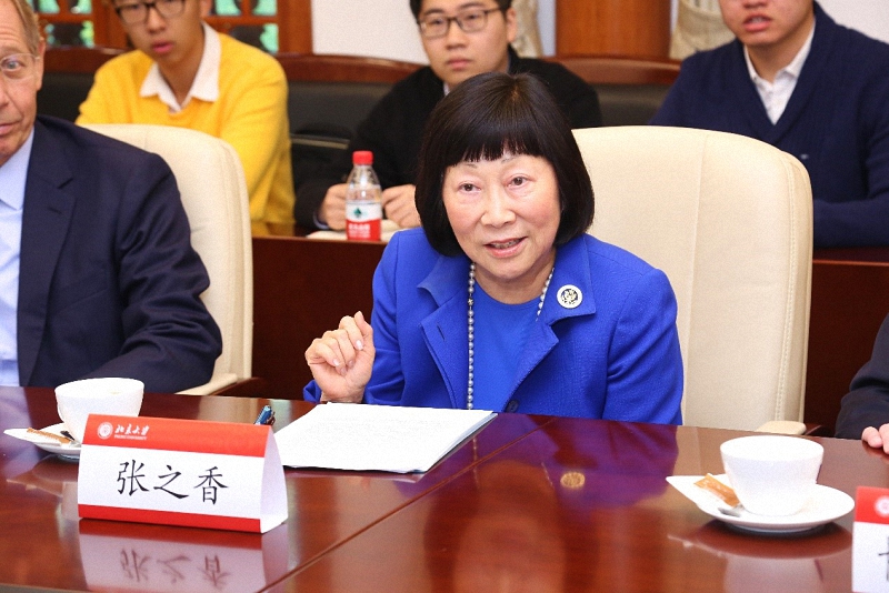 张之香对北京大学的支持表示由衷的感谢,她与美方一行嘉宾作为伯杰担任公职期间的同事,共同见证了伯杰对中美关系的重视与投入,期待“伯杰纪念奖学金”的设立能够鼓励青年学者为中美关系的发展作出更大的贡献。