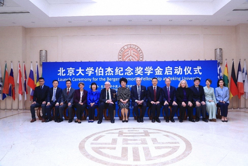 受美国前国家安全事务助理伯杰(Samuel Berger)先生遗孀苏珊·伯杰(Susan Berger)之委托,美中教育基金会主席、美国前驻尼泊尔大使张之香女士提议在北京大学教育基金会(美国)设立“伯杰纪念奖学金”。该奖学金旨在推动中美两国青年、文化与教育交流,促进中国的美国研究与中美学术交流,并推动中美人文交流与两国关系。经审议,北京大学教育基金会(美国)批准捐资在北京大学设立“北京大学国际关系学院伯杰纪念奖学金 ”。张之香携苏珊·伯杰的亲笔信专程来华出席启动仪式。全国政协港澳台侨委员会副主任、国务院原侨办主任裘援平,美国驻华大使布兰斯塔德,美国商务部前部长、石桥集团董事会主席古铁雷斯,美国前驻巴基斯坦大使、亚洲协会前会长卜励德、外交部美大司参赞王擎,北京大学教育基金会(美国)总裁赵琳女士等多位中美嘉宾应邀参加。