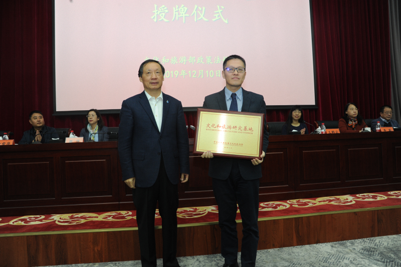 授牌仪式由文化和旅游部政策法规司司长张永新主持,政策法规司副司长王鹤云宣读了《文化和旅游部关于公布“文化和旅游研究基地”名单的通知》。通知指出,为深入贯彻习近平新时代中国特色社会主义思想和党的十九大精神,适应新时代我国文化建设和旅游发展新形势的新要求,进一步推动文化和旅游研究基地的建设和管理,打造中国特色的高质量文化和旅游智库,文化和旅游部经研究决定设立“文化和旅游研究基地”,增强文化和旅游研究的科学性、前瞻性和务实性,以更好地推动我国文化和旅游的高质量发展和融合发展。