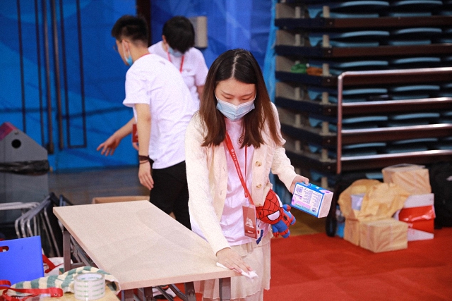 志愿者正在进行物资准备