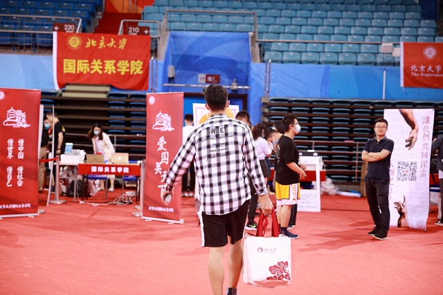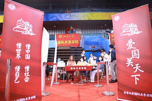 秋天是北京最好的季节,在九月第一天的熹微晨光中,国关的师生们早已在邱德拔体育馆的迎新站点做好了准备,摆放宣传展架、准备好新生入学物资,静静地守候“国关新燕”们。