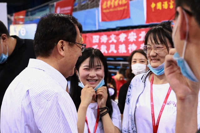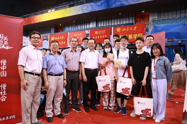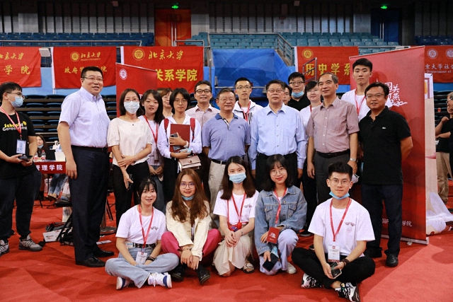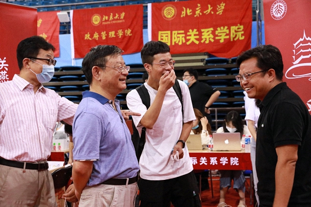 北京大学党委书记邱水平、校长郝平也来到国关迎新站点,同国关师生亲切交谈,并向新生表示热烈的欢迎。