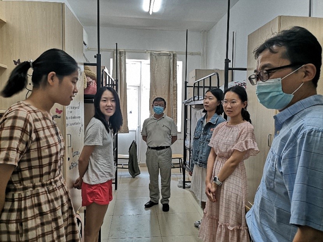 老师们与学生在宿舍交流