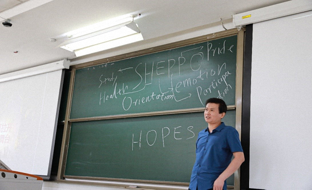国关20级本科1班班主任梅然老师在随后的发言中谈了自己对北大精神和国关传统的理解,他用“SHEPPO”概括了自己对大学生活的印象,这六字母分别代表study、healthy、emotion、participation、pride、orientation,表达了梅然老师对大家的学术研究、大学生活和为人处世的殷切嘱托。“SHEPPO”汇聚一句话就是“HOPES”,梅然老师指出,同学们是民族的希望、北大的希望、国关的希望,希望大家有意识、有方向学习知识,提前对未来做出规划。