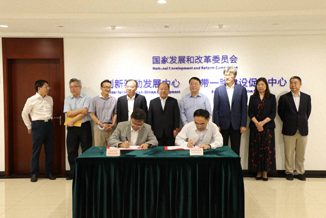 2020年9月12日下午,北京大学国际关系学院等五所高校教学科研单位与发改委一带一路建设促进中心进行战略合作座谈会暨签约仪式在北京举行。国家发展改革委副主任、推进“一带一路”建设工作领导小组办公室副主任宁吉喆出席,北京大学王博副校长、学院唐士其院长、翟崑教授、项佐涛院长助理参会。座谈会后,在与会领导的见证下,唐士其院长与一带一路建设促进中心翟东升主任签署合作协议。