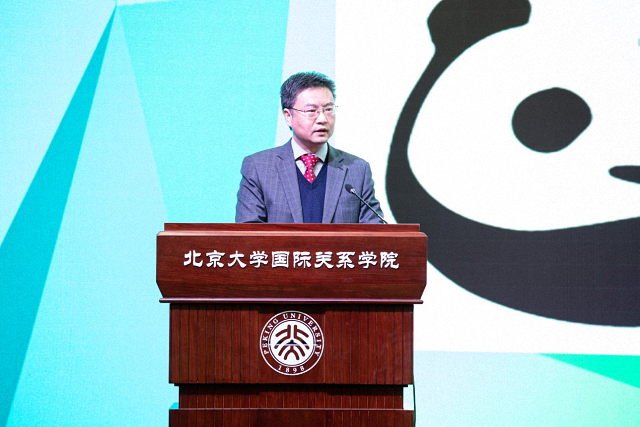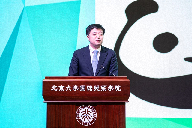 张海滨首先代表国际关系学院致欢迎辞。他向莅临开幕式的各位嘉宾和参与青年峰会的高校青年代表们表示热烈欢迎和衷心感谢。他表示,近年来北京大学国际关系学院积极服务国家战略,将国际组织人才培养作为国际关系学院人才培养新的增长点,不断加大国际组织人才培养工作力度, 2017年在国内率先设置“国际组织与国际公共政策”二级学科硕士学位授予点,并成立国内高校第一个国际组织与国际公共政策系,强调本次青年峰会的举办意义重大,是对中国政府明年主办《生物多样性公约》第十五次缔约方大会的积极响应和支持,是对中国积极为世界培养和输送全球治理优秀人才这一国家战略的积极响应和支持,是对加强联合国和多边主义呼声的积极响应和支持。他表示,国际关系学院与世界自然基金会北京办事处共同主办此次活动,是强强联合,优势互补,相得益彰。他期待大学生代表们通过参加此次模拟全球环境谈判活动,一要对全球环境问题和可持续发展问题有更多更深的了解,进一步拓展国际视野,在推进全球环境治理的伟大事业中勇当先锋;二要增强呵护地球和大自然的使命感和责任感;三要熟悉国际环境谈判的基本特点、程序和规则,努力锻炼和提升交流沟通能力,为将来真正参与多边谈判和国际交流奠定良好基础;四要广交朋友,相互学习,共同进步,共创美好的未来。