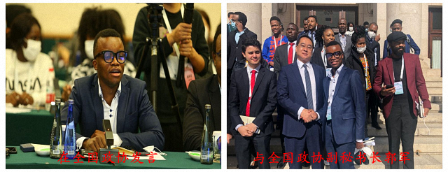 10月28日,门杜同其他中非青年代表走进全国政协活动与部分全国政协委员座谈交流。门杜作为全体在华非洲青年代表团推举的团长,向政协领导人提问有关帮助非洲青年更好就业、成为技能型人才、促进非洲能动性,以及解决中非关系还存在的可持续性不足等问题。