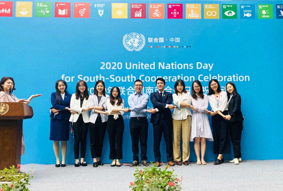 正在联合国开发计划署驻华代表处实习的2019级研究生胡杉宇(左四)