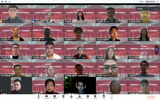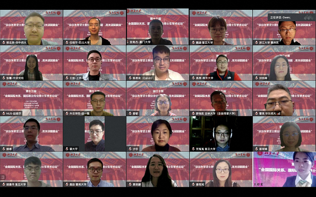2020年11月21-22日,第十三届“全国国际关系、国际政治专业博士生学术论坛”在北京大学召开。本届论坛的主题为“外交能力建设:理论与实践”。因疫情防控要求,论坛首次采用线上线下相结合的方式召开。北京大学国际关系学院副编审、《国际政治研究》编辑部主任庄俊举主持开幕式,北京大学研究生院培养办公室主任胡晓阳,北京大学国际关系学院副院长张海滨教授,北京大学博雅特聘教授、《国际政治研究》主编王逸舟分别致辞。外交学院夏莉萍教授、中央财经大学政府管理学院白云真教授、上海社会科学院国际关系研究所李开盛研究员、北京大学国际关系学院祁昊天助理教授、中国人民大学国际关系学院曹德军老师出席开幕式。