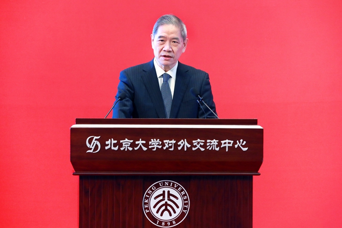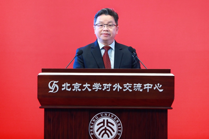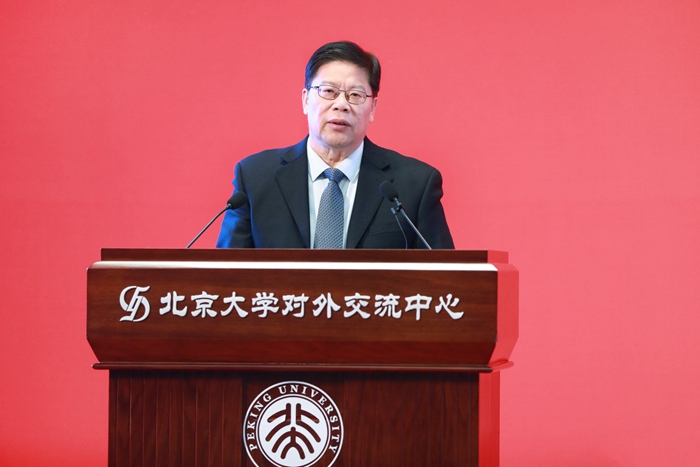 邱水平回顾了两岸同胞携手同心、共同抗疫的感人故事,以及正在神州大地上发生的减贫奇迹,指出要发挥中华文化在两岸关系中重要的纽带和桥梁作用,大力弘扬民族精神,推动两岸关系沿着顺应历史潮流和时代大势的方向前进,这也是我们以“中华文化:传承与创新”为主题举办本届论坛的根本目的。他希望与会专家学者开动脑筋、深入思考,共同传承中华优秀传统文化,不断发掘两岸关系和平发展和中华民族伟大复兴的精神文化密码。邱水平表示,北大一贯高度重视海峡两岸的学术交流与合作,将继续与社会各界、与两岸同胞和海内外中华儿女一道,在实现中华民族伟大复兴的“中国梦”历史进程中,勠力同心、携手同行,让中华优秀文化薪火相传、生生不息。