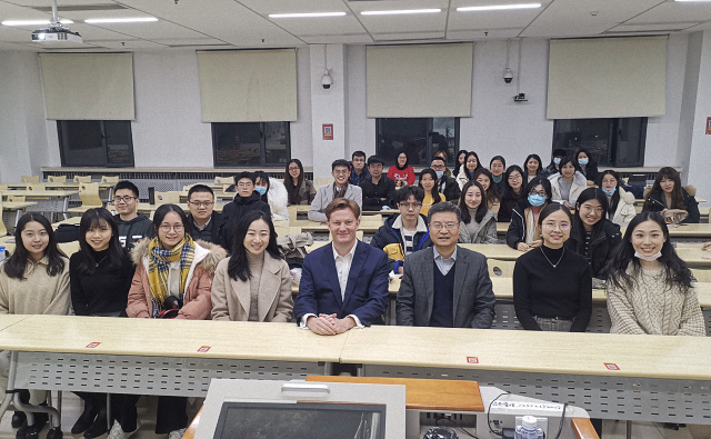 会见结束后,艾德明爵士应邀为北京大学国际关系学院《国际组织与全球治理前沿名家讲座》课程做专题讲座。张海滨教授致欢迎辞,陈沐阳助理教授主持讲座。